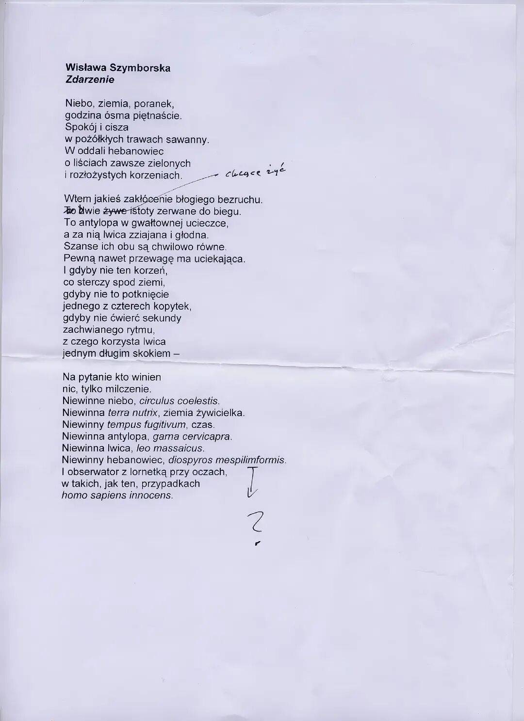 魯西內(nèi)克:我先想到的是回到辛波斯卡給青年人尤其是文學(xué)和詩歌愛好者的回信上,她是有非常心軟的地方的,她不太喜歡過重地評價別人的作品,尤其年輕詩人發(fā)來作品請她評價時,她不會用尖銳的語言,她認為那樣做對年輕人是有害的。