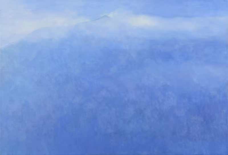 堅(jiān)持十幾年戶外寫生的畫家,在無數(shù)次獨(dú)自面對自然,來到人跡罕至之處,面對自然的孤寂,讓個體的孤寂與宇宙的孤寂,得到了深度的共感,那純粹的藍(lán),才向著藝術(shù)家顯現(xiàn)出來。