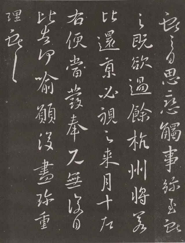 王獻(xiàn)之《餘杭帖》(又稱《觸事帖》)拓本。行書(shū)。六行,五十一字。入刻《淳化閣帖》卷九。