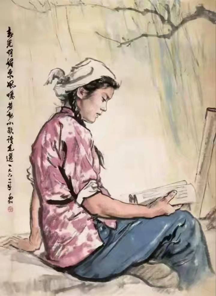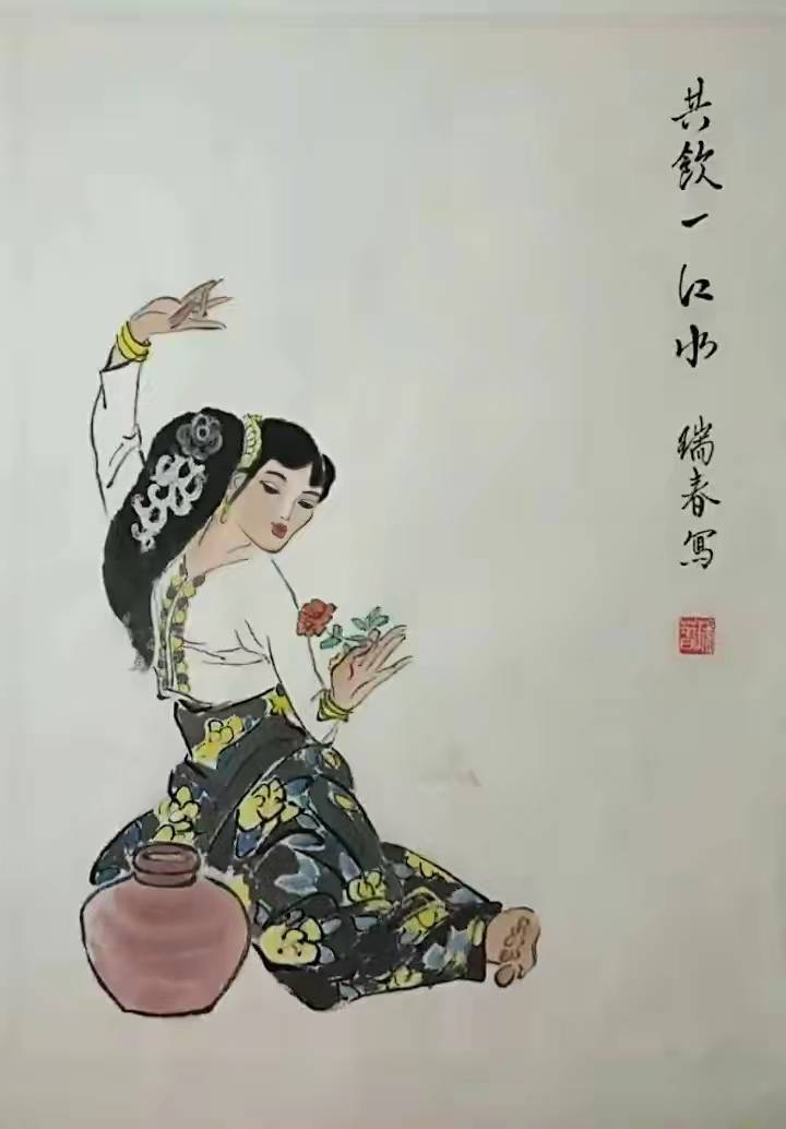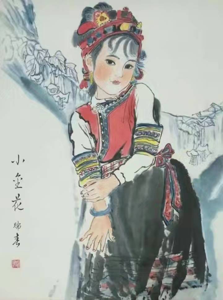 人物小品畫中的花卉不可太完整,不能喧賓奪主。如同古典詩詞里的平仄聲韻,起承轉(zhuǎn)合,與人物形象拉開一定的距離,只起豐富繪畫語言,和襯托人物的作用。