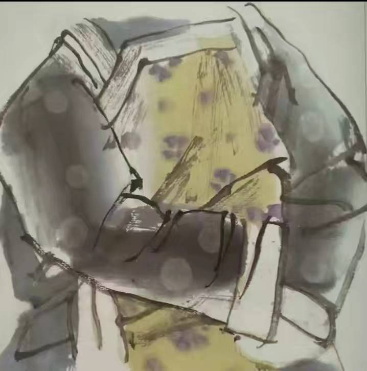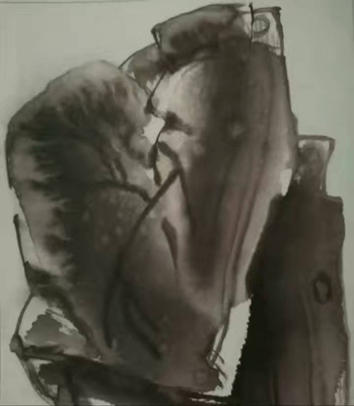 是一種虛境的處理方法。先用大盤調(diào)出二三盤不同深淺的墨或色水,再將宣紙揉成團(tuán)用不同的面去蘸不同深淺的墨或色水,展開后用筆修改,有自然天成之妙。