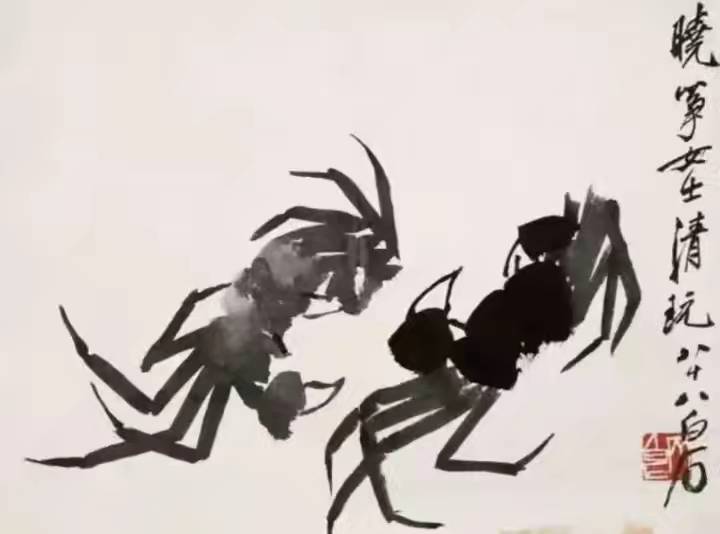小品畫的立意原于造字的象形:簡筆畫形。齊白石多以小品畫養(yǎng)活家人。他說"不似為欺世,太似為媚俗,貴在不似與似之間"。