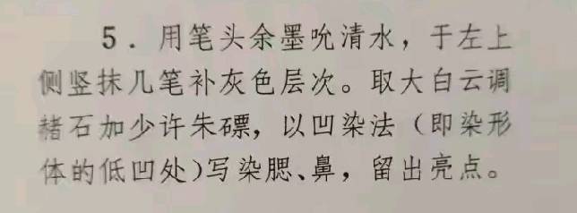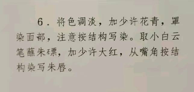 4,蘸墨也要練習(xí)在筆的不同部位蘸墨和水,掌控筆上的水份。畫五官怕洇,用干筆筆尖少蘸墨,畫衣紋層次,應(yīng)該筆根筆肚筆尖蘸不同的墨或色,一筆寫出不同的墨色。