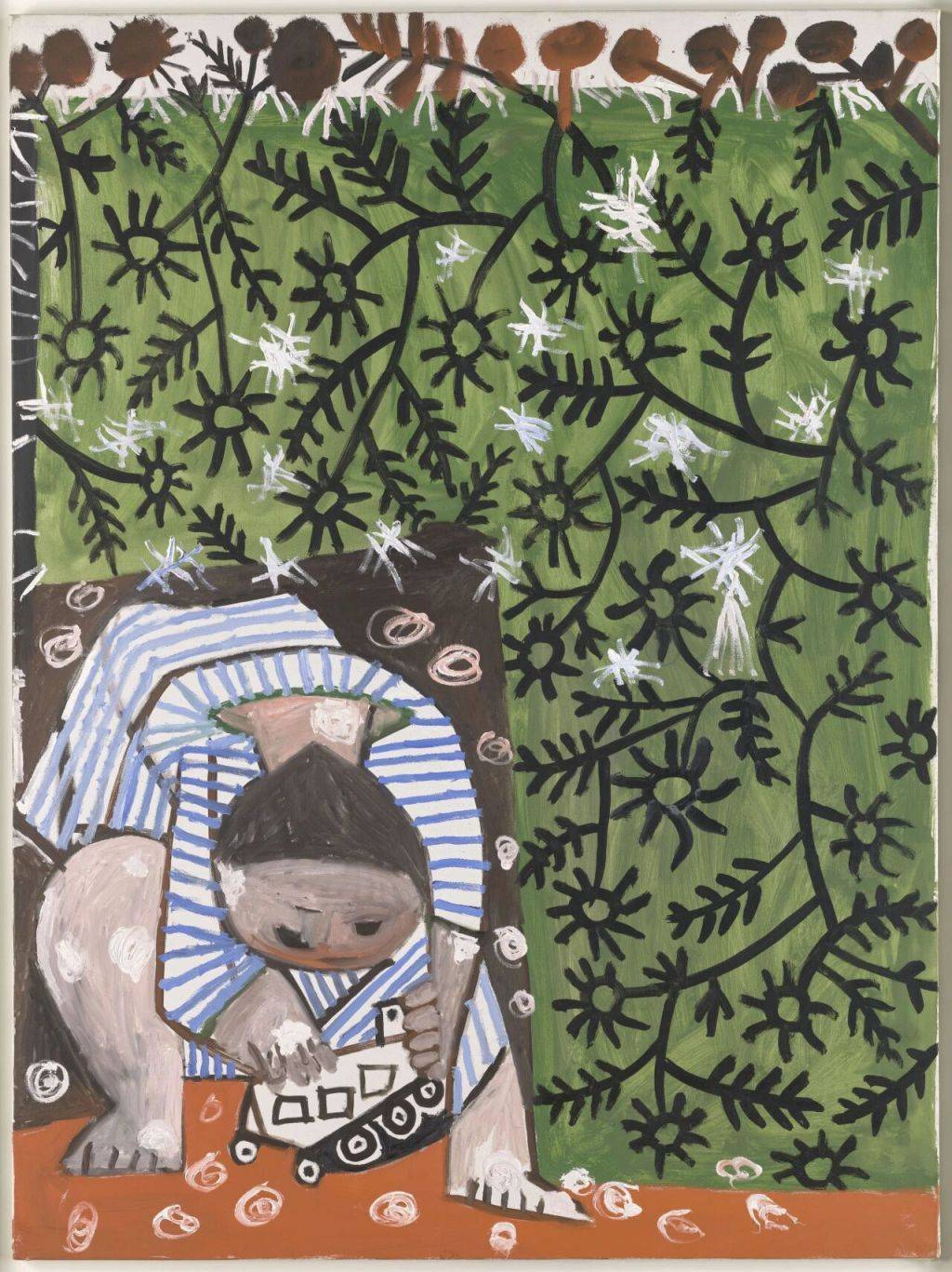 巴勃羅·畢加索,《與玩具卡車玩耍的幼兒》1953,布面油畫