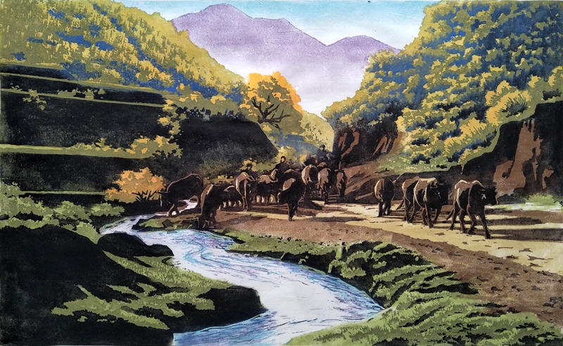 出牧 59×36cm 水印木刻 2020年