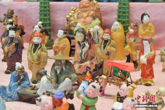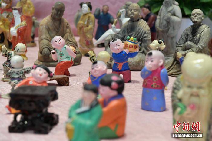 圖為各種泥塑或陶瓷人亮相“擺塔”習(xí)俗。中新社記者 張斌 攝
