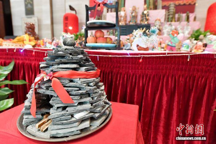 9月30日,為迎接即將到來的中秋佳節(jié),福州特有的中秋習(xí)俗“擺塔”再度在福州大飯店亮相!皵[塔”據(jù)傳源于明嘉靖年間,戚繼光將軍率領(lǐng)他的戚家軍來閩抗擊倭寇,取得節(jié)節(jié)勝利。一次勝利正逢中秋,老百姓紛紛把家里的珍藏拿出來擺在廳堂上,或是在室外擺壘搭自然風(fēng)景,營造歡慶勝利、歡度中秋佳節(jié)的氣氛,后相沿成俗。在福州,舊時中秋“擺塔”,農(nóng)家娃拾瓦片、砌瓦塔;至夜,以柴點燃,火光四射。城里人則擺泥塑或陶瓷人物形象,如關(guān)羽、張飛等,還會擺上燭臺、花瓶、香爐等。中新社記者 張斌 攝