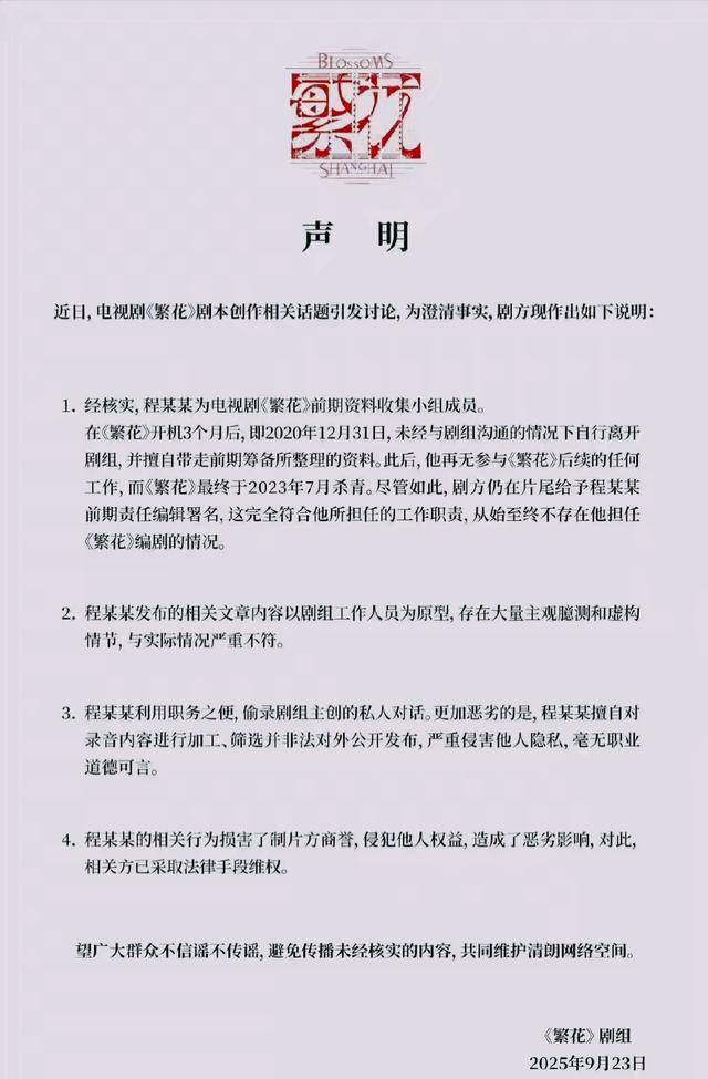 繁花劇組也發(fā)了聲明,說(shuō)給了古二前期責(zé)編的署名。