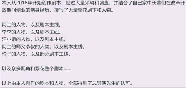 爆料人是《繁花》前期工作人員古二(真名程駿年),他說(shuō)自己前期辛苦的收集資料,編寫(xiě)主線人物故事。