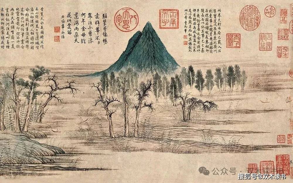 后來這幅《鵲華秋色圖》成了傳世名作,畫上還留著兩人的題跋,字跡一剛一柔,相映成趣。