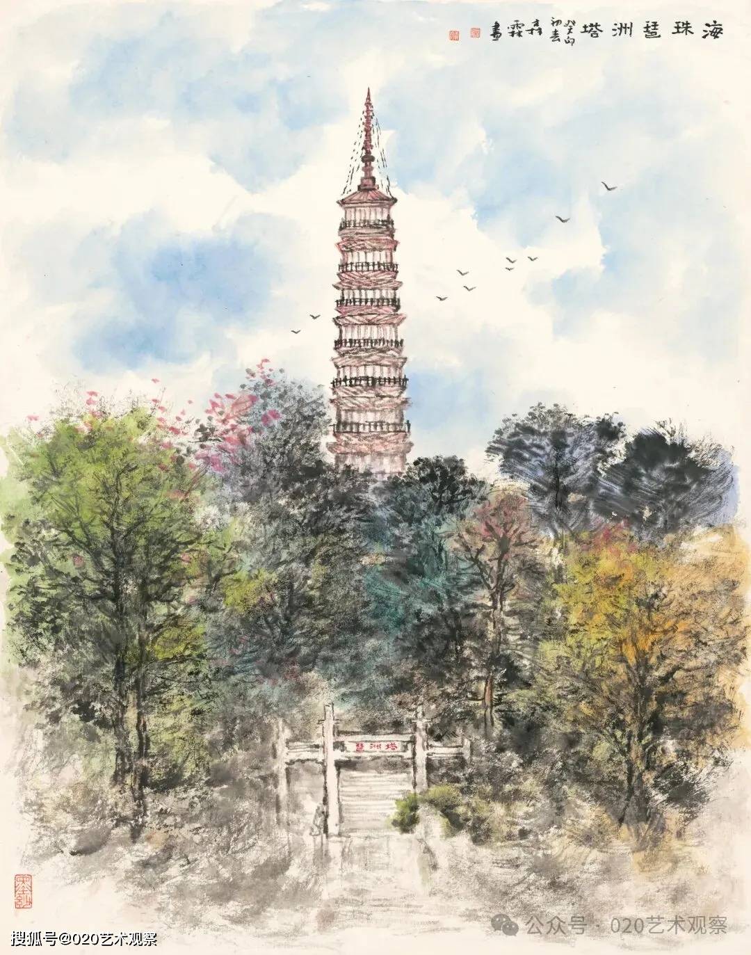 《海珠琶洲塔》張森霖 56cm×44cm 國畫 2023