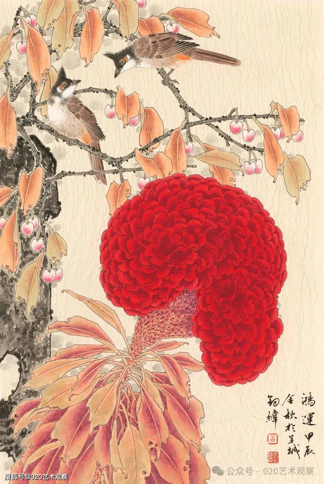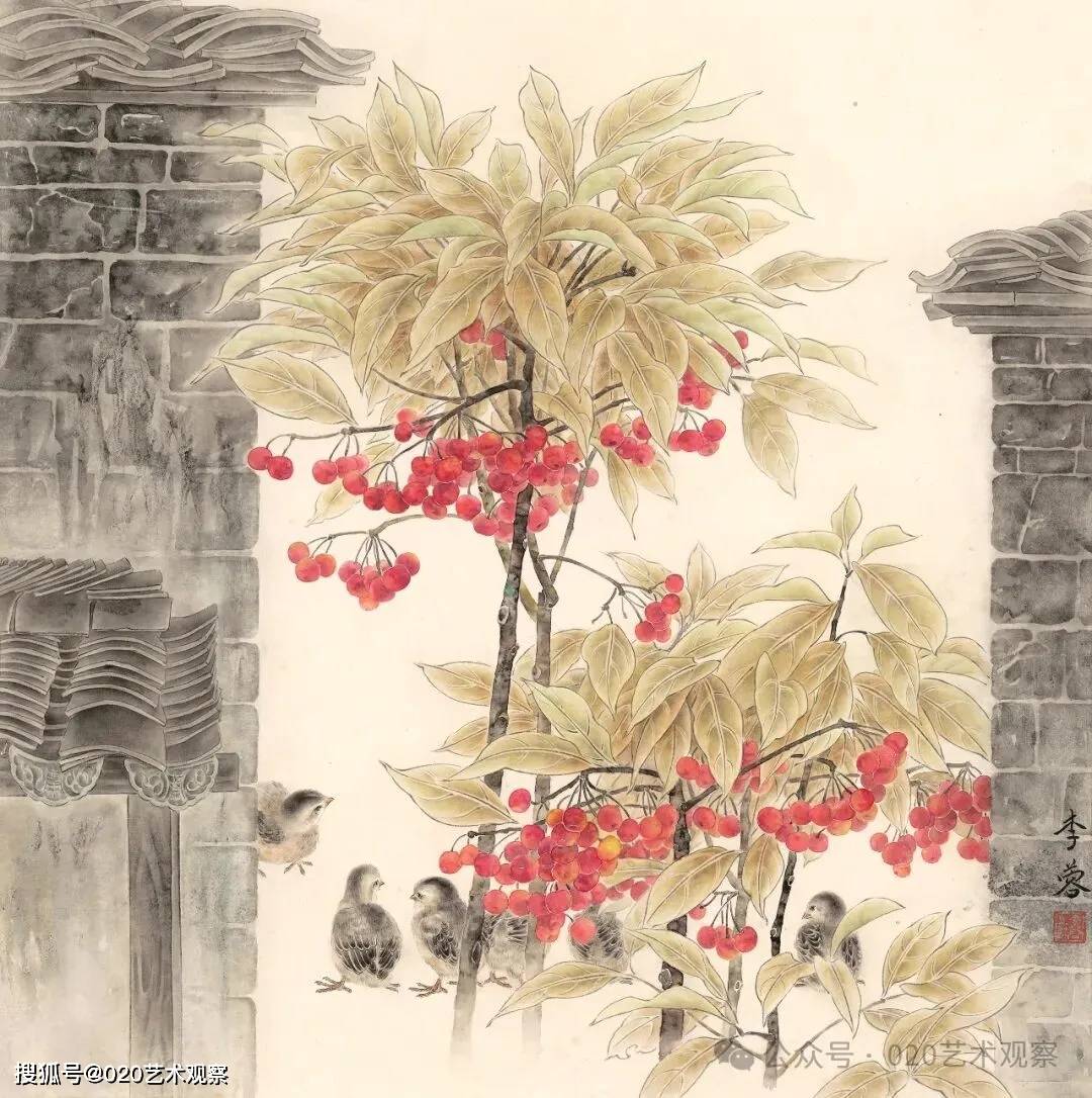 《紅果棲禽》戚鋒宇 49cm×49cm 國畫 2025
