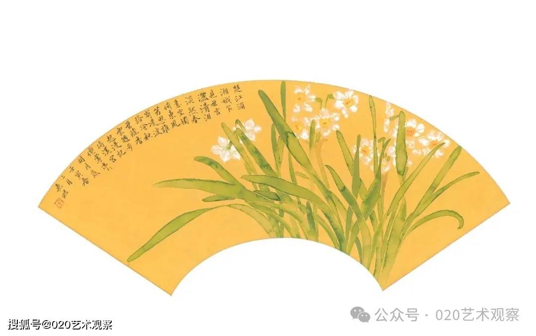 《花卉寫生之水仙》金箋扇面 汪麗君 20cm×60cm 國畫 2022