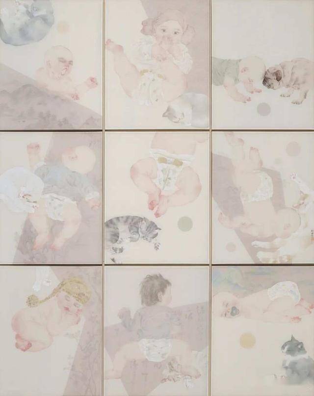 傳統(tǒng)工筆畫多為單一時空的靜態(tài)呈現(xiàn),而當(dāng)代作品常打破時間與空間的界限,引入多重視角與非線性敘事。例如,郝量通過“游觀式”構(gòu)圖,將不同時空的景物并置,形成“古今對話”的視覺敘事;彭薇則將工筆人物與手稿、信札結(jié)合,構(gòu)建個人化的記憶空間。這種時空重構(gòu)使工筆畫具備更強(qiáng)的觀念性與文學(xué)性。